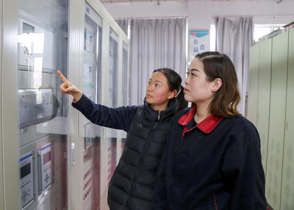 坐标:矿35KV变电所,农历年三十上午8点38分,两名值班人员进行安全巡察。