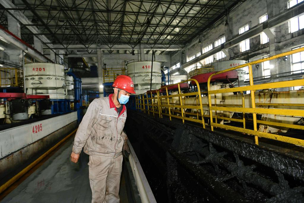 该厂西区选煤车间职工田永正在浮选生产现场检查浮选精矿情况。他早上接班后,根据生产调度通知按时间点开车,进行安全确认,接到启车信号后等待集控启车,启车加煤、加浮选药剂和絮凝剂、检查浮选机刮料和尾矿是否正常、检查设备是否正常,马不停蹄地忙碌着一个班。他说,坚守是一种“站好每一班岗”的责任意识;坚守是一种“舍小家为大家”的奉献精神。