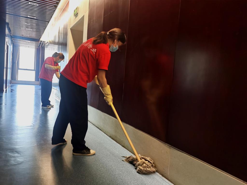 逸园物业利用假期大楼人员少的契机,组织保洁人员对各楼层进行深度保洁。