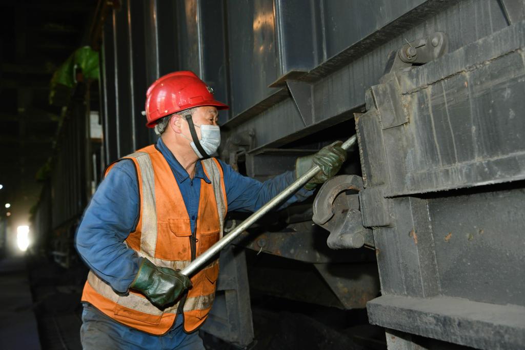 “最近生产任务很重,4月28日我们4人卸了254车,15000多吨原煤,今天又卸了90多车,明天凌晨估计还得入厂70列。”脸上、身上沾满煤灰的班长黄平均站在空车皮上,正在用撬棍钣紧转盘,关闭车门。黄平均是一名有着近30年党龄的退伍军人,在装卸岗位上秉承军人的优良传统,退伍不褪色,始终保持着吃苦耐劳、特别能战斗的军人作风。疫情封闭管理实行轮岗制,以前4班倒变成现在的两班倒,装卸任务加重,打连勤是常有的事,不爱说话的黄平均总是身先士卒,冲在前、干在先,用实际行动带动着身边的工友,克服重重困难,圆满完成了一次次装卸任务。