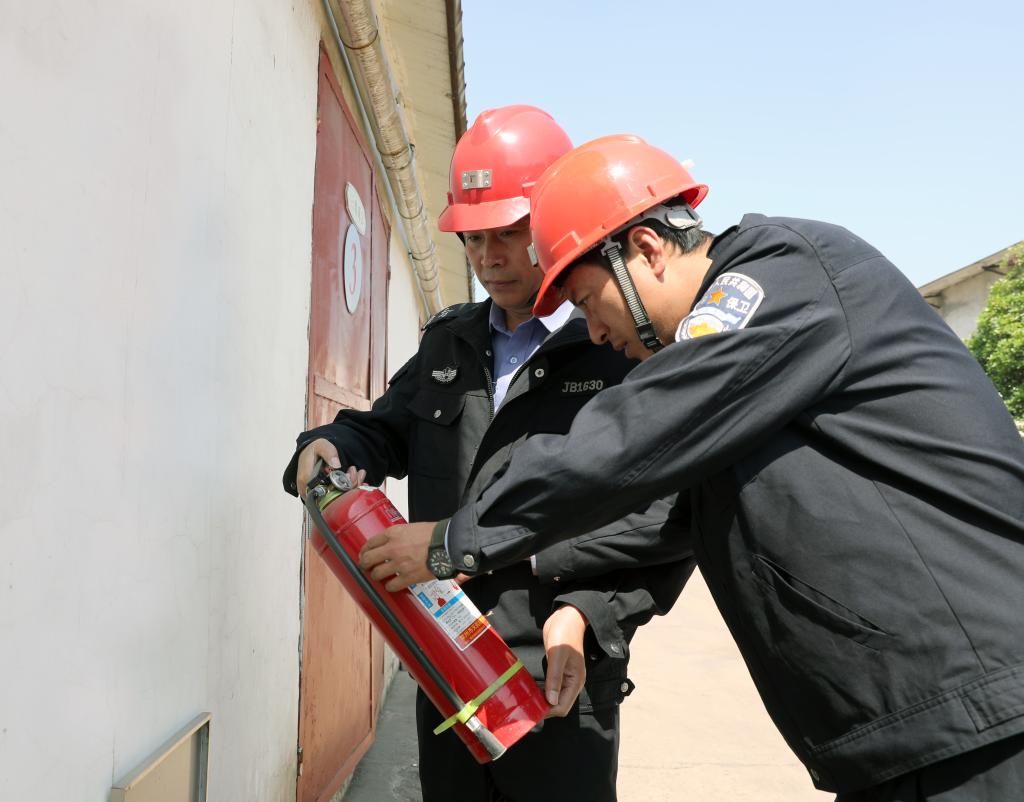 物业公司职工程永、陈燕飞检查消防设施。“节日期间的消防安全尤为重要,越是放假了,我们越是要加大巡查力度,坚决杜绝消防隐患。”