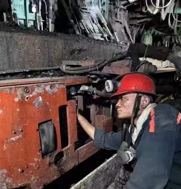 八年的军旅生涯锻炼了他迎难而上的勇气,永不服输的豪气,赵强强退伍后选择了与采煤机打交道,查资料、跑现场、学技术,从一个元器件到一个回路,从拆了装,再到装了拆,硬是啃下了一块块硬骨头。2021年10月份,芦岭矿第一个智能化工作面即将投入建设,赵强强主动请缨加入了Ⅲ1022工作面智能小组,支架控制器、架间电缆、各种传感器安装……从年初二开始,赵强强没有休息一天,工具包里除了工具就是干硬的馒头,身上的工作服湿了干,干了又湿,从地面设备装车到井下打运,安装,调试,工作千头万绪,他主动挑起大梁,带领两名职工成功完成118架的电液控安装和调试。