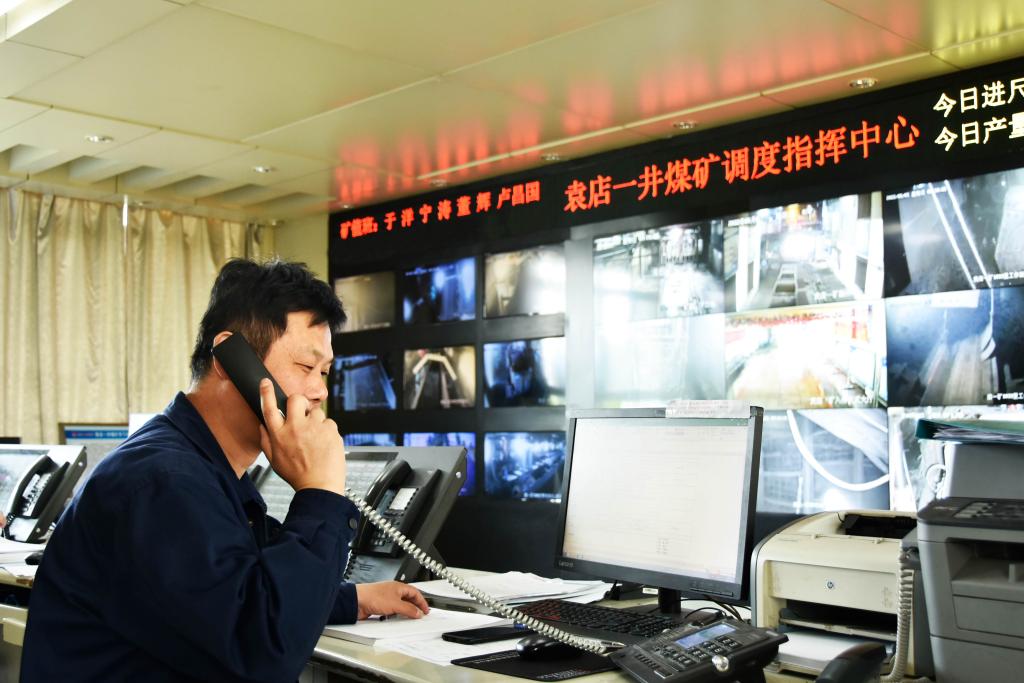 调度员余勇敢正在接听井下生产电话。“要严格落实矿主要领导的要求,淡化节日氛围,抓好安全生产,我们是矿安全生产的中枢,更是不能有丝毫大意。”