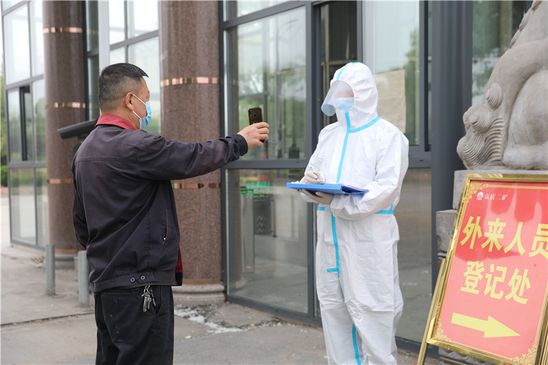 在该矿东门岗,本土“大白”仍然坚守在矿井战疫第一线,严格地执行着查验、登记等各项疫情防控措施。当班的“大白”是该矿物业公司治保队员李勇,这个“五一”他依然选择坚守岗位,为矿井守好外防输入的第一道关口。