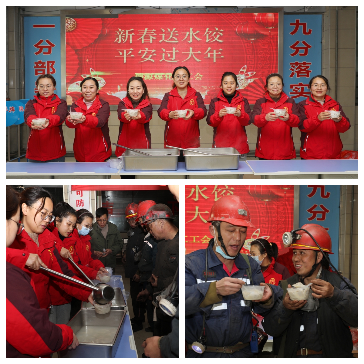 1月18日中午,神源煤化工井口飘来阵阵香味,原来是该公司协安员为刚升井的职工们送上一碗碗热气腾腾的水饺。一份份饺子、一句句叮咛,饱含着对一线职工的安全期望与深情祝福,不仅让职工感受到了年的味道、家的温暖,也激发了大家的爱矿情怀和工作动力,在新的一年里,以更加饱满的精神状态和昂扬的斗志为公司发展再立新功。(撰稿:王晶晶 武相铭 审核:宋贤芹 )