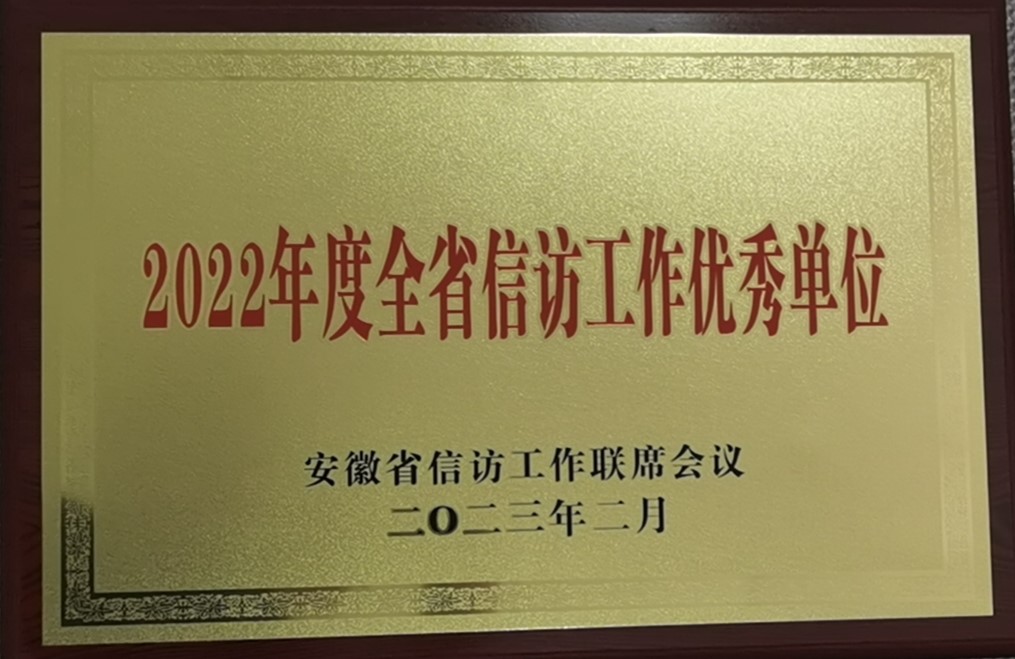 近日,安徽省信访工作联席会议下发《关于表扬2022年度全省信访工作责任目标考核优秀单位的通报》,william英国中文官网集团在2022年度全省信访工作责任目标考核中被评为全省信访工作优秀单位。