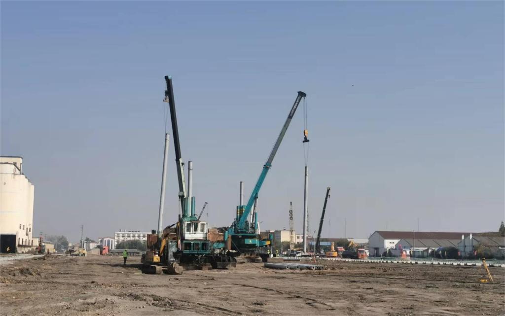 “8月31日开工仪式后,项目部进场施工。目前,场内桩基施工已完成95%;集装箱装卸场地、露天堆场、跨铁路线仓库进入基础施工阶段;专用线铁路改造施工已经过半。”工程部部长孟磊介绍,当下正值秋季施工黄金期,11月份集装箱装卸场地、露天堆场开始混凝土浇筑,12月底具备运营条件。
