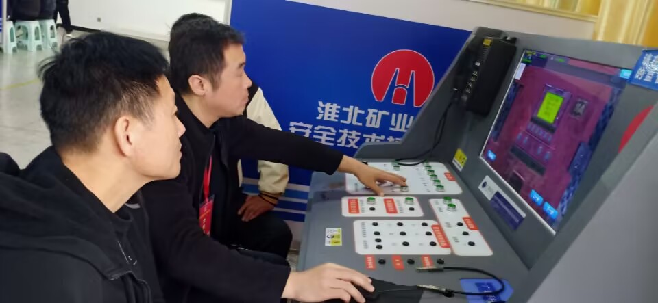 培训学员利用仿真模拟训练装置进行煤矿井下电气作业实操训练