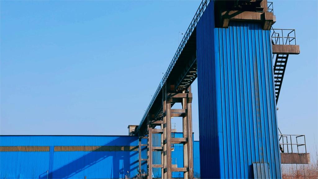 杨柳矿建成投运1200米全封闭高空排矸栈桥及矸石大棚,实现矿区地面无尘化运输。(郗桂昌 摄)