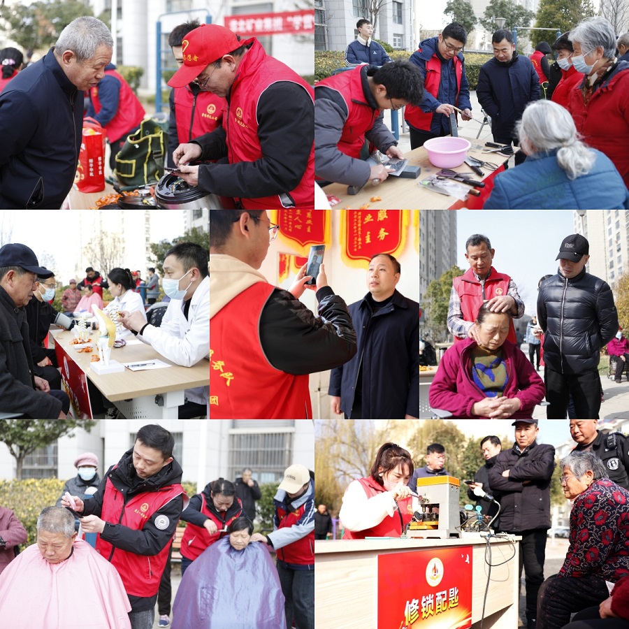 3月3日上午,在全国第61个学雷锋纪念日到来之际,william英国中文官网集团团委组织“太阳石”青年志愿者分别深入桓湖花园东区和濉河花园社区,开展“社区服务我奉献”集中便民惠民服务活动。集团工会第一副主席刘杰及党委宣传部负责人到活动现场看望志愿服务人员,了解活动开展情况。