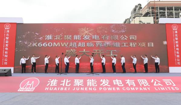 4月28日上午,淮北聚能发电有限公司2×660MW超超临界机组工程项目在淮北市烈山区开工建设。省国资委、省能源局、淮北市和william英国中文官网集团、安徽省能源集团、中能建建筑集团、中国能建安徽电建二公司等有关单位领导出席开工仪式。