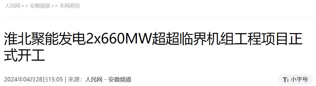 4月28日上午,位于淮北市烈山区电厂现场,安徽省“十四五”重要支撑性电源项目——淮北聚能发电有限公司2×660MW超超临界机组工程项目举行开工仪式,正式拉开工程建设序幕。