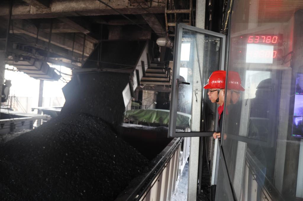 图为该矿供应销售部职工吕运贺正在监装原煤外运装车情况。