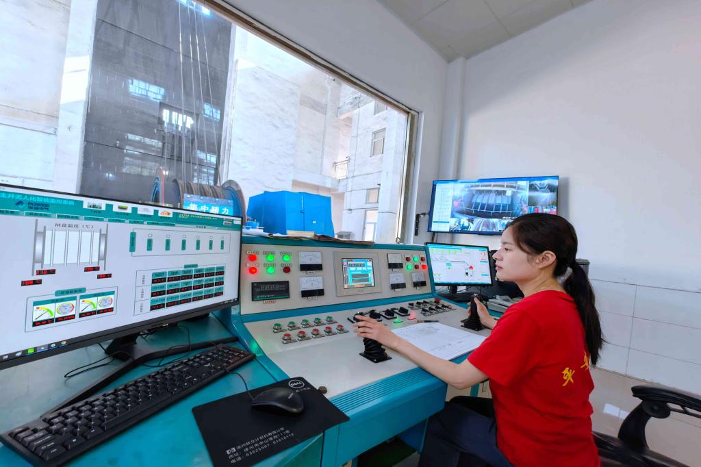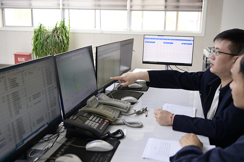 热电分公司生产技术科科长刘国中在中控室检查生产数据。