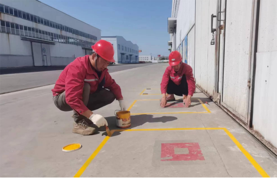 在AGV高架库出入口,张勇、赵自卫正在忙碌着。“这是干什么呢”“返库位、出货位标志已经模糊,导致探头识别力减弱,为了使标识更加规范鲜明,使货位识别更加快速精准,我们要重新给予画线。”只见他们互相配合,先用透明胶带把黄线边缘粘上,然后用黄色油漆刷新。
