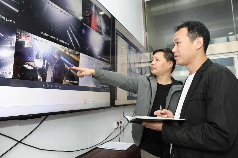 安监处安检员林松、宋玉视频筛查“三违”行为。