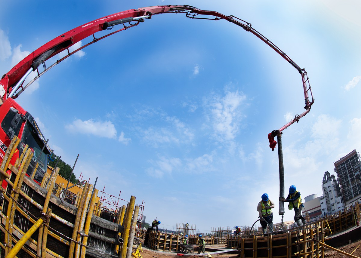 泵车正在浇注聚能发电公司机组项目锅炉承台短柱