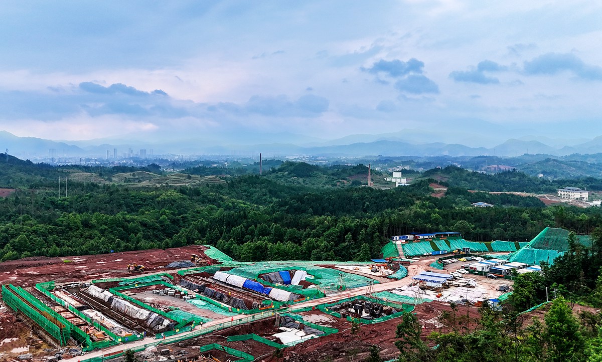 5月13日,航拍雷鸣科化靖州八姑岩矿山建设项目基建施工现场