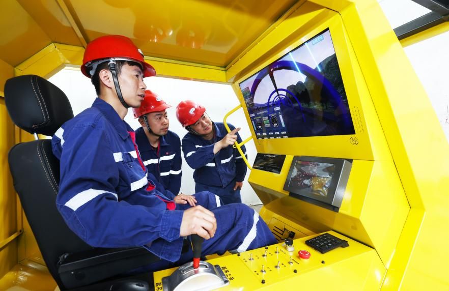 通过新型掘进仿真培训系统,临涣矿创新应用“仿真设备+虚拟场景”技术,精准还原井下作业环境。学员在培训车间内,全面实景实操搭载VR系统的仿真设备,屏幕实时呈现井下巷道布局、煤岩构造等细节,沉浸式完成掘进机截割、转载煤岩等全流程操作。