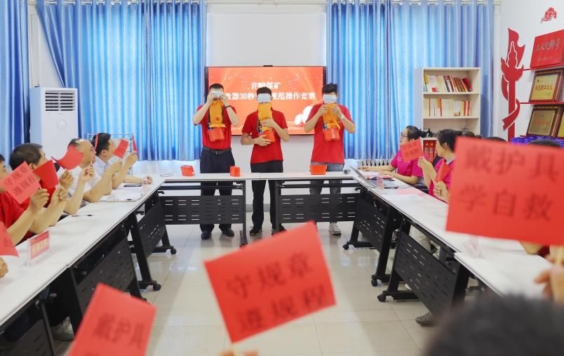 围绕矿井安全生产中心工作,许疃矿送训上门。“安全生产月”期间,该矿采煤系统将安全知识竞赛升级为“擂台对垒模式”,增加区队之间互问和比拼环节,尤其是“安全隐患我查找”抢答和“自救器盲带30秒规范操作大比拼”有奖活动,点燃了员工学习掌握安全知识、技能的热情。