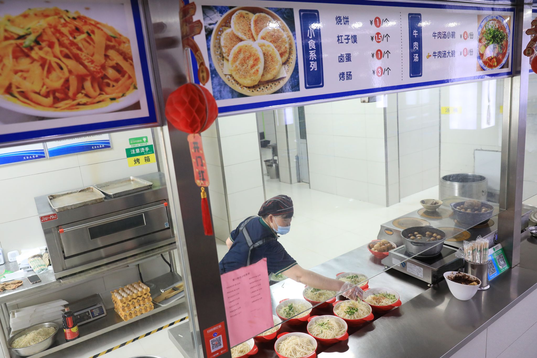 杨柳矿食堂内,窗明几净,空气中飘散着食物的香气。供应给职工的凉面晶莹剔透,瓜果堆叠得色彩缤纷,热气腾腾的羊肉汤散发着诱人的味道。然而,在这份“清凉”背后,是矿上为筑牢食品安全防线所做的细致功课。从食材采购的源头追溯,到加工过程的严格把控;从储存环境的温度监控,到防蝇防鼠的物理隔绝……