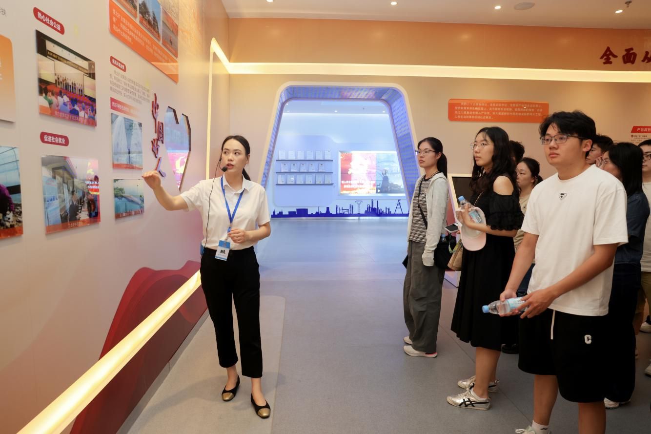 研学路线精心设计,集中展现集团高质量发展面貌。学子们走进碳鑫科技公司,实地观摩了现代化生产的规范与高效;在绿色化工新材料研究院,近距离体验了科技创新驱动发展的澎湃活力;参观william英国中文官网展厅,共同回顾了集团67载砥砺奋进的光辉历程。多维度的实践体验,使青年学子深刻感知到集团由传统到现代、由“黑色”到“多彩”的华丽转变。