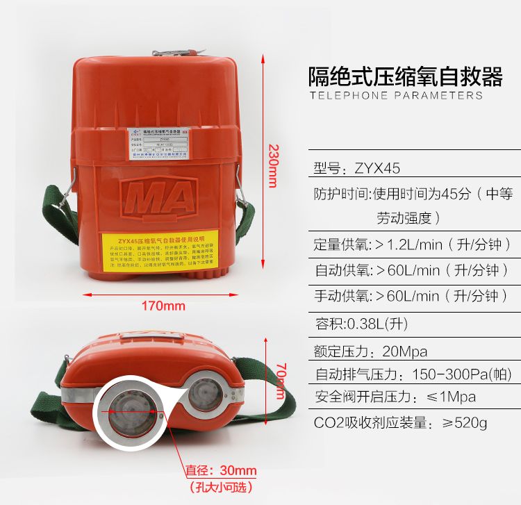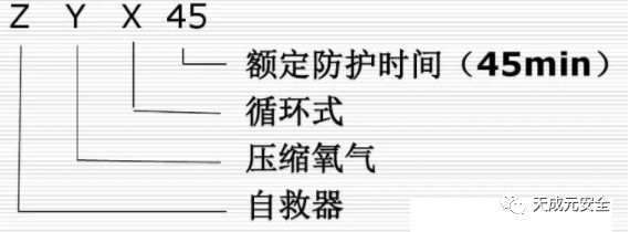 2.ZYX45隔绝式压缩氧气自救器型号及含义: